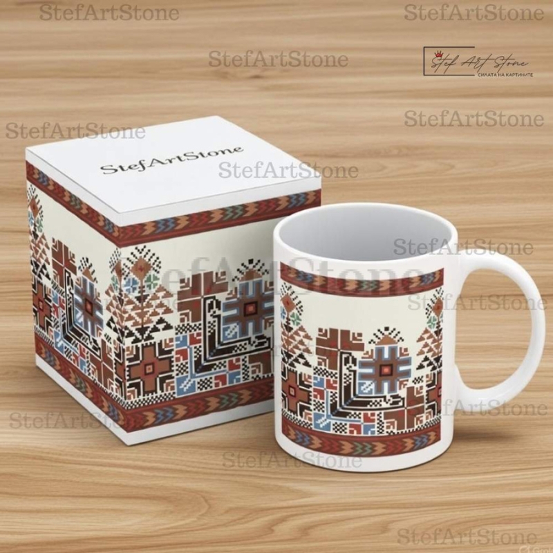 Всяка чаша от серия "Възраждане" пристига при вас в красива тематична кутия, която повтаря мотива на самата шевица. Не е нужно да мислите за допълнителна опаковка – получавате напълно завършен и стилен подарък, готов за връчване веднага!