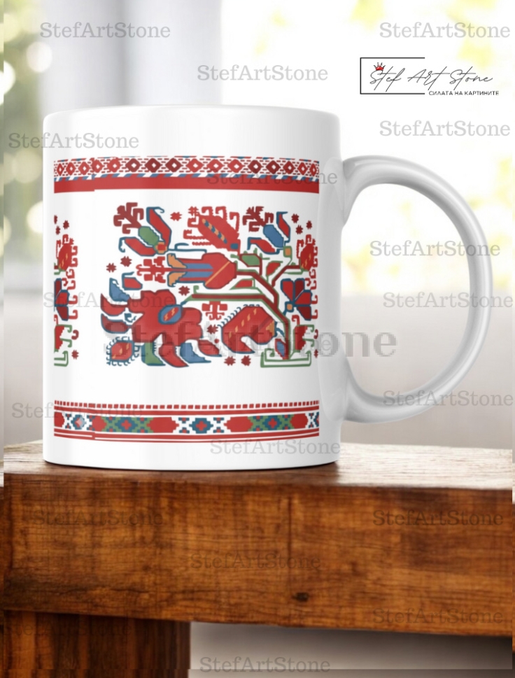 - Стил и Класика: За разлика от нашите чаши с надписи, този модел акцентира изцяло върху визуалното въздействие на орнамента. Той е перфектен за тези, които предпочитат "чистата" визия на традицията.