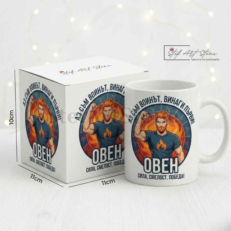 Чаша за Мъж Зодия Овен – Лидерски Подарък с Мотивиращ Надпис