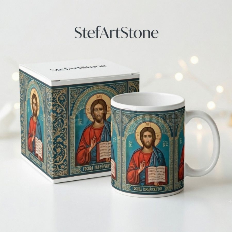 - Завършен търговски вид: Дизайнът се отличава с автентично православно излъчване и красиви мотиви, които рамкират иконата. Най-голямото предимство е, че чашата пристига в луксозна кутия със същата богата орнаментика. Получавате напълно готов подарък, който впечатлява още преди да бъде отворен!