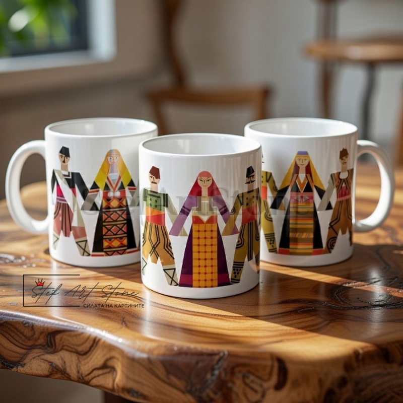 - Традиция и Цвят: Дизайнът изобразява пъстро хоро, което веднага привлича погледа. За разлика от стандартните сувенири, тук българските мотиви са представени в ярки, жизнерадостни цветове.