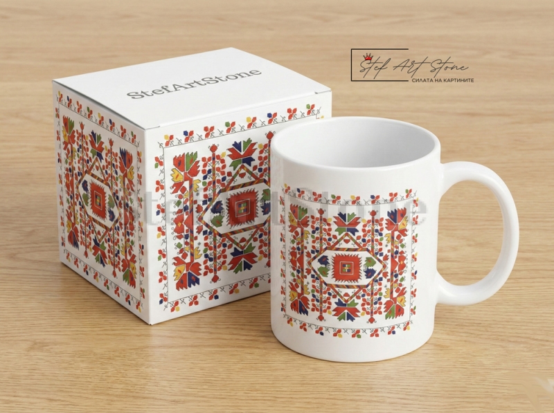 Чаша с Българска Шевица "Род и Традиция" – Етно Сувенир за Хармония и Уют