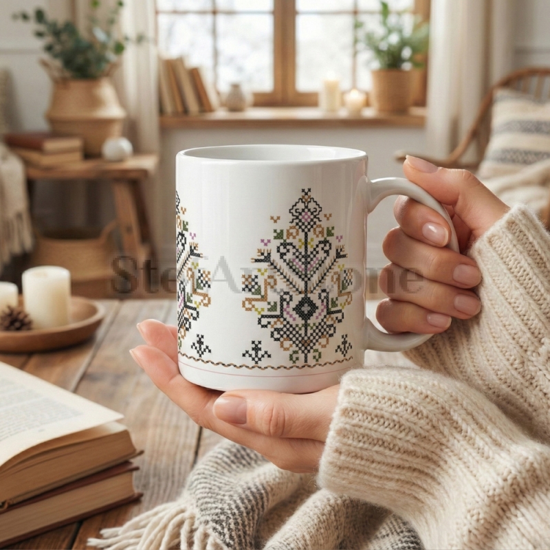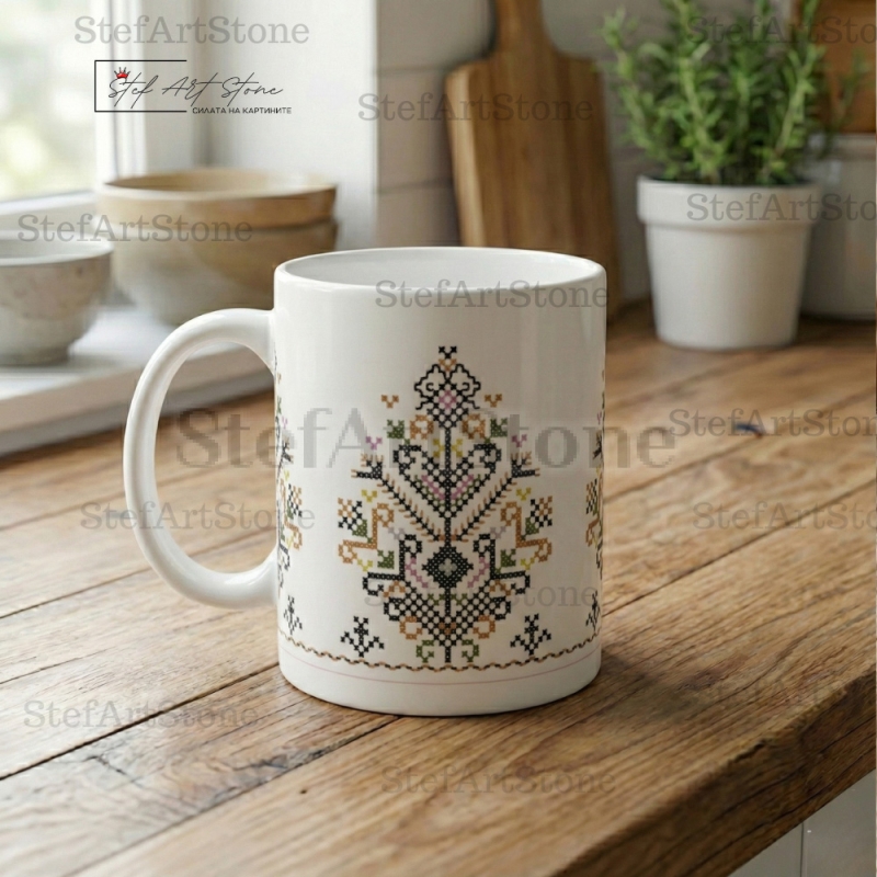 - ☕ Висок Клас (AAA+): Керамика с идеален блясък, върху която фините кръстат бод детайли изглеждат като истинска бродерия.