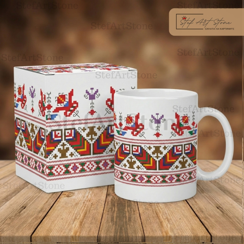 Керамична Чаша с Шевица "Весело Хоро" – Символ на Единството (Клас ААА+ в Кутия)
