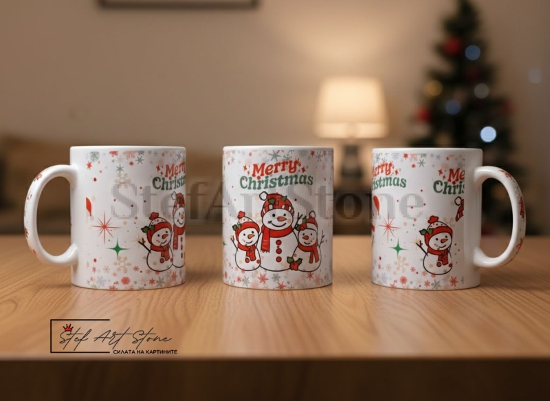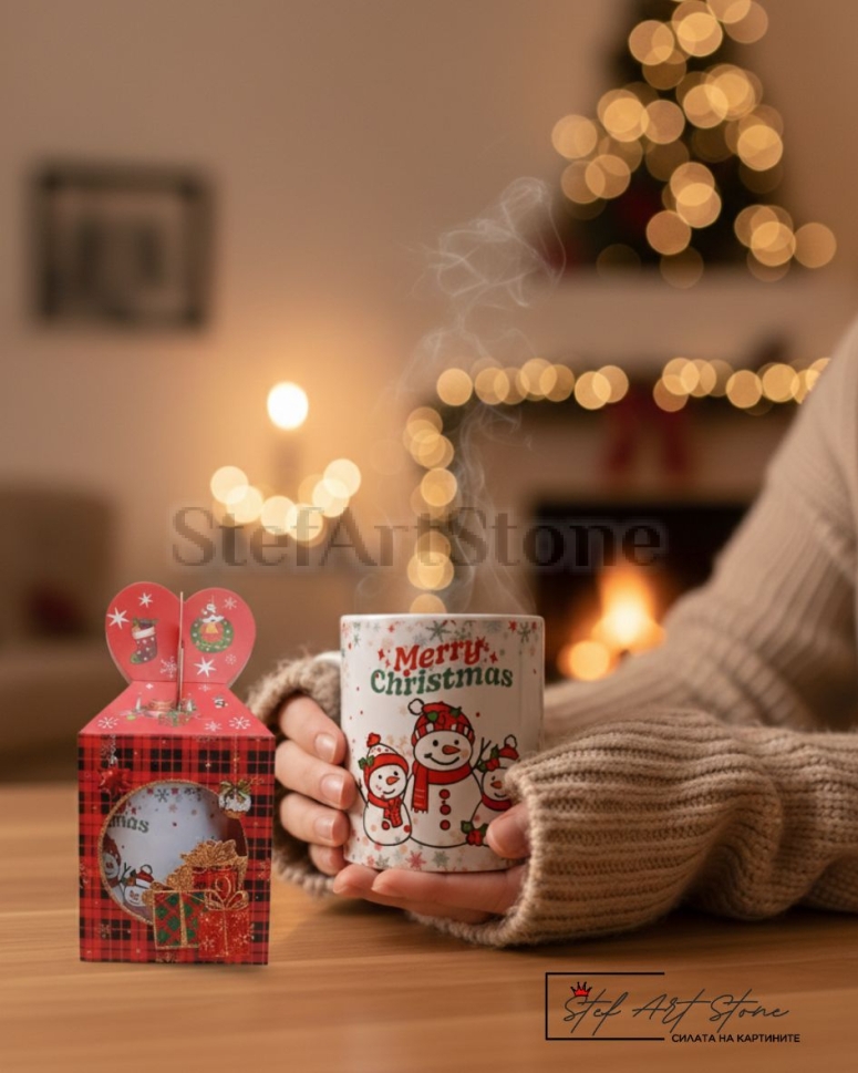Коледна чаша "Весели Снежни Човеци" – Празничен подарък за уютни дни