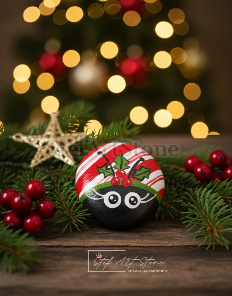 Коледна Декорация: Рисуван Камък Калинка с ИМЕЛ 🐞 | Луксозен Арт Подарък