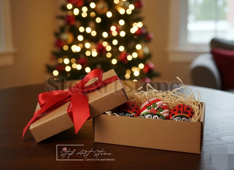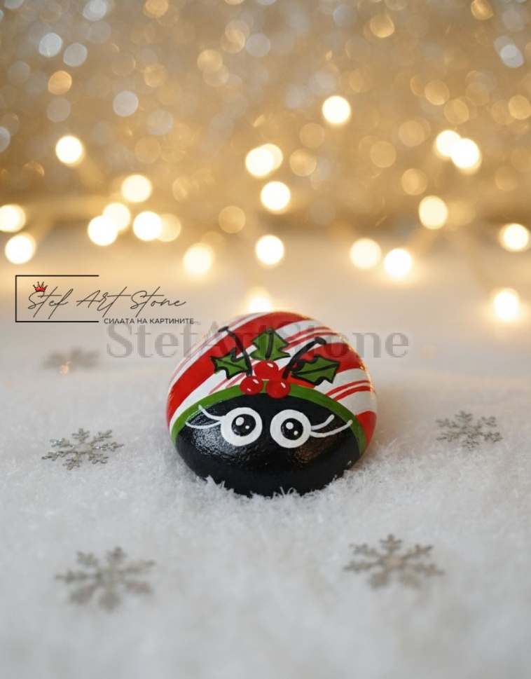 ПРЕМИУМ Коледна Украса: Представяме Ви Камък Калинка с Празничен Дизайн!