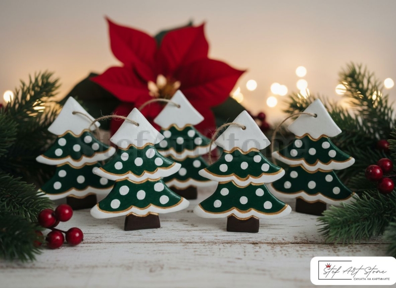 - 🎄 КОЛЕДНА ИГРАЧКА - ЕЛХА – Ръчно изработен керамичен орнамент.
