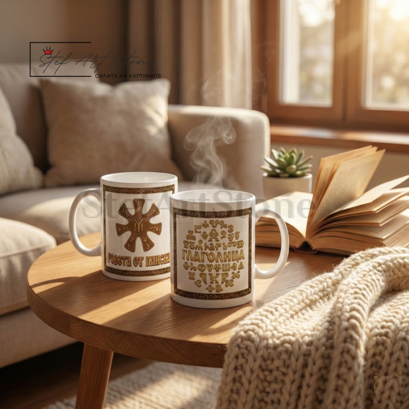 ✨ Чаша „Свещената Глаголица“ – Силата на знанието