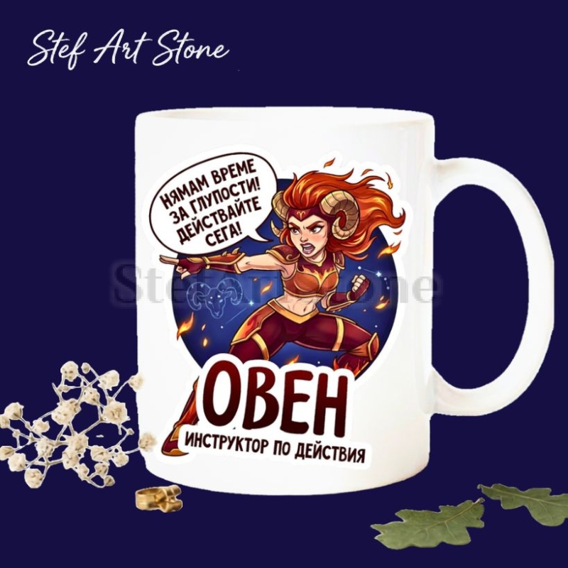 Представителките на този огнен знак са известни със своята целеустременост и бързина. Нашата чаша за зодия Овен е създадена специално за тези динамични дами, които не обичат да чакат. Илюстрацията на безстрашна жена с рога на овен и категоричният надпис "Инструктор по действия" превръщат този продукт във визуален израз на тяхната вътрешна сила. Това е оригинален подарък за жена, който говори на нейния език – директен, смел и безкомпромисен.