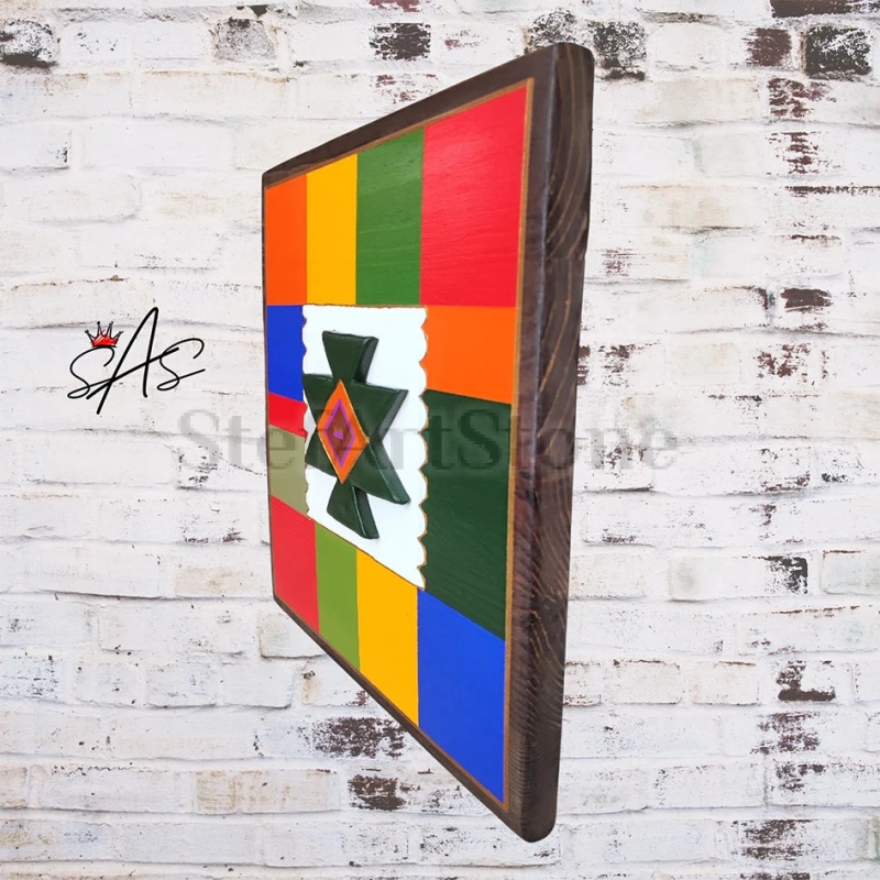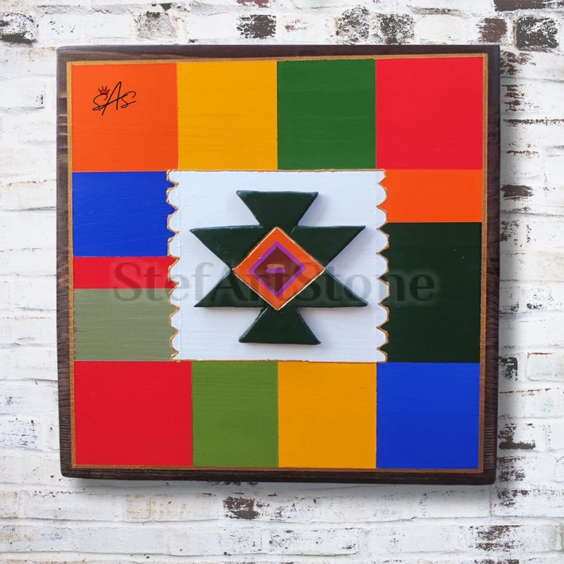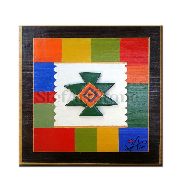 Канатица – Картина пластика в зелен цвят е ръчно изработено произведение, вдъхновено от една от най-известните български шевици – канатицата. Тази уникална картина пластика представлява символ на защита, семейно единство и благополучие. Създадена върху здрава дървена основа, тя е перфектно съчетание от традиционна символика и съвременна естетика.