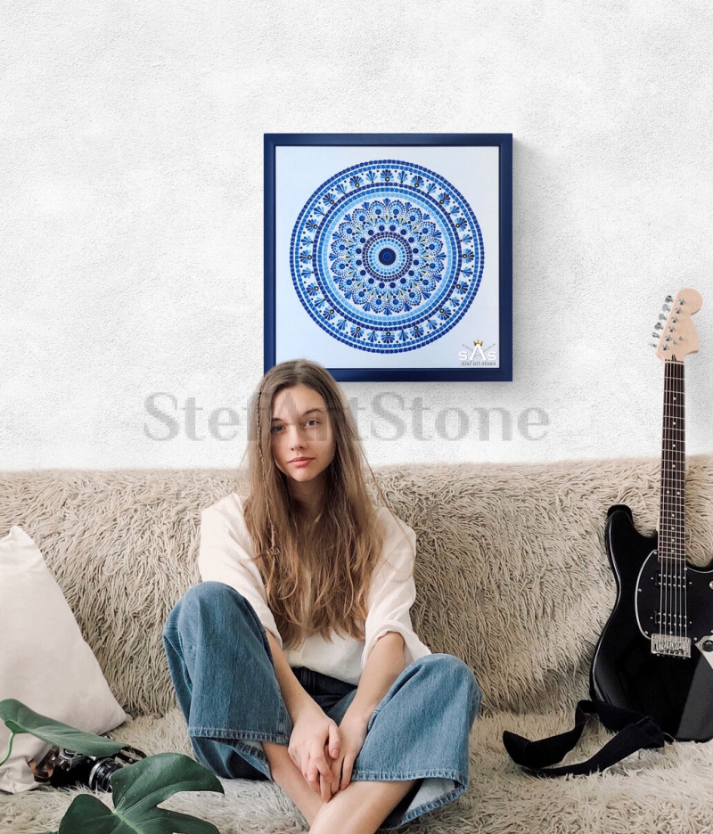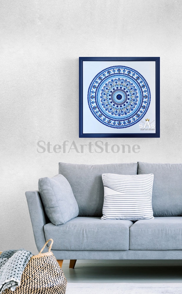 Начало ❤️ Картини Мандала – синьо вълшебство 40/40 рамка платно