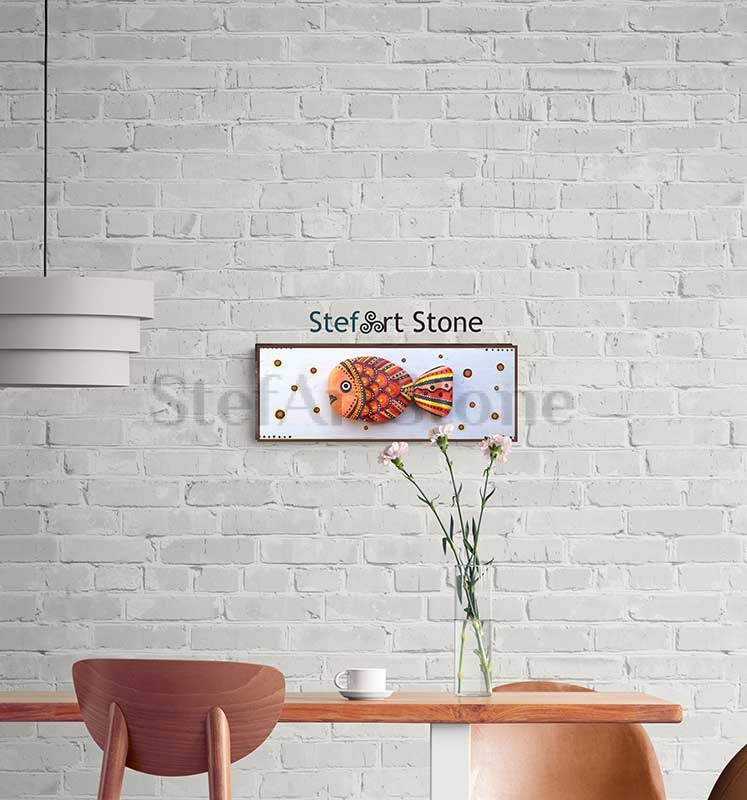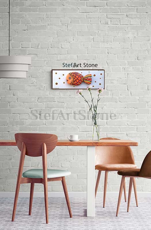 Картина Риба 5 рисувани камъни 40 х 15