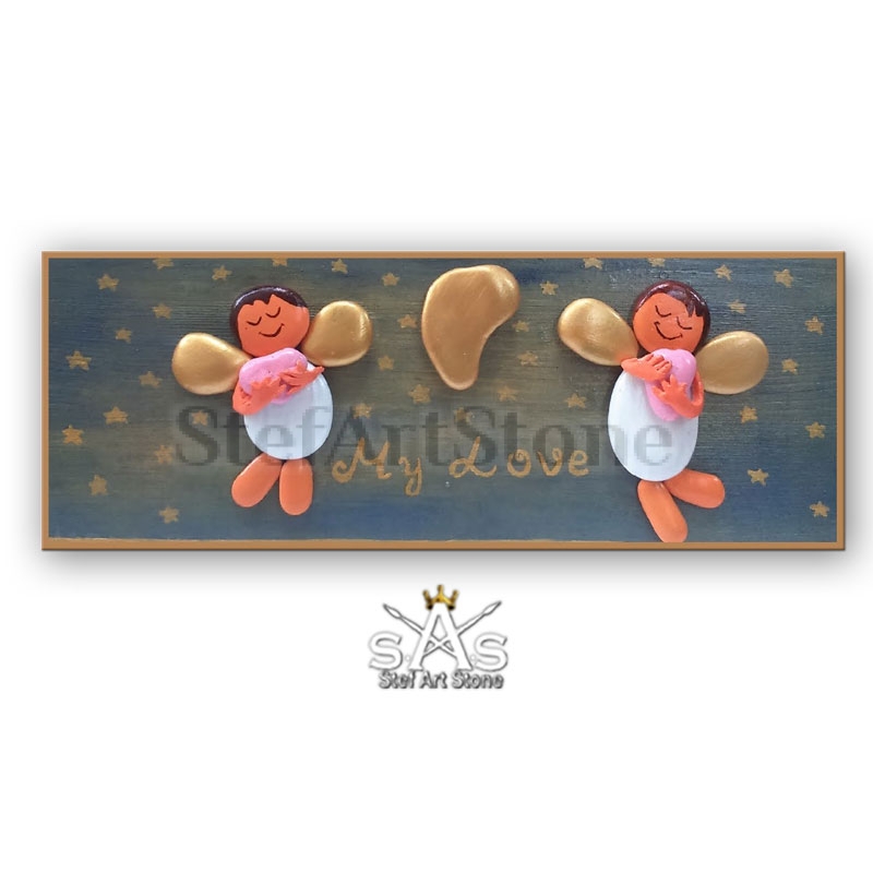 Изработена от ръчно рисувани камъни в хармонични цветове,