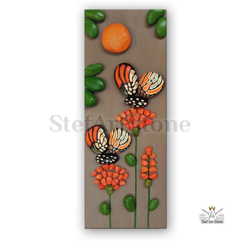 Изработена от ръчно рисувани камъни в хармонични цветове,
