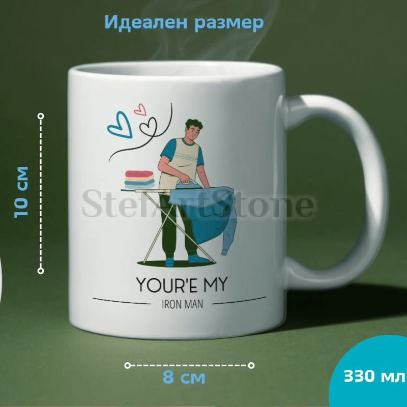 Чашата с надпис „You're My Iron Man“ е уникален и стилен подарък за всеки, който цени комбинацията от хумор, обич и поп култура.