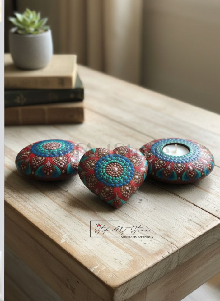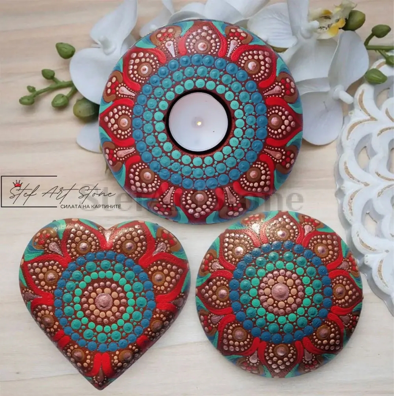 - Камък мандала (12 см): Перфектен подарък за рожден ден или годишнина.